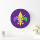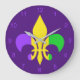 Reloj Redondo Grande Mardi Gras verde violeta amarilla
