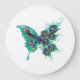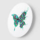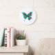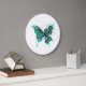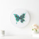 Reloj Redondo Grande Mariposa con plumas de pavo real verde