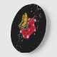 Reloj Redondo Grande Mariposa en rosa roja con estrellas y gotas de llu