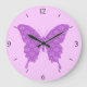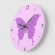 Reloj Redondo Grande Mariposa, patrón abstracto, lavanda y púrpura