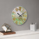 Reloj Redondo Grande Mármol Amarillo Gris Oro Números romanos metálicos