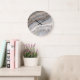 Reloj Redondo Grande Mármol de Curly Gris: venas doradas