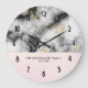 Reloj familiar personalizado con un elegante y moderno diseño de mármol. Mármol blanco, negro y gris ahumado con cintas delgadas de giros de imitación de oro a lo largo del patrón. Fondo de gradiente rosa claro bajo el patrón de mármol. Cara de reloj de estilo Art Déco.