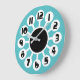 Reloj moderno de mediados de siglo en negro y azul. El moderno MCM es un movimiento en diseño interior, diseño de productos, diseño gráfico, arquitectura y desarrollo urbano presente en todo el mundo, pero más popular en Estados Unidos, Brasil y Europa desde aproximadamente 1945 a 1970 durante el periodo post-Segunda Guerra Mundial de Estados Unidos. La decoración y la arquitectura de estilo MCM han experimentado un gran resurgimiento que comenzó a finales de los años 90 y que continúa hasta la fecha.