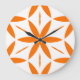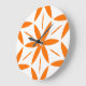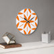 Energize your space with this orange geometric floral clock featuring a mid-century modern starburst pattern.