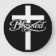 This minimalist Blessed cross design combines clean geometric structure with elegant script typography for a modern expression of faith. The word “Blessed” intersects the vertical beam of the cross, symbolizing alignment, gratitude, and spiritual foundation.