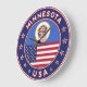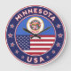 Insignia de Minnesota con bandera de Minnesota y bandera de los colores de Estados Unidos, forma redondeada. Emblema de Minnesota. Sello de Minnesota. Colección de Estados Unidos.