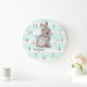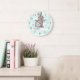 Reloj Redondo Grande Mint Stripes Grey Bunny Nursery Wall Clock