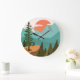 Reloj Redondo Grande Modern Abstract Forest, Mountains, and Sunrise