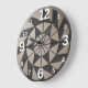 Add a touch of sophisticated symmetry to your wall with this Modern Geometric Tribal clock. This design features a mesmerizing radial pattern of triangles creating a starburst effect, rendered in a calming palette of taupe, beige, charcoal, and warm grey.