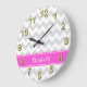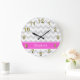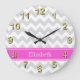 Reloj Redondo Grande Monograma De Nombre Rosado Caliente De Chevron Bla