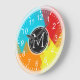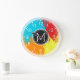 Reloj Redondo Grande Monograma moderno con mosaico azul amarillo Naranj