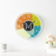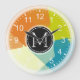 Reloj Redondo Grande Monograma moderno Naranja de cal azul Mosaic