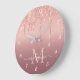 Reloj Redondo Grande Monograma Nombre Texto Rosa Oro Purpurina Rubor Re