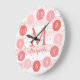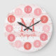 Un simple monograma. El fondo tiene rayas blancas y rosas y un purpurina rosa. Las horas del reloj forman una paleta de colores, puede cambiar esos colores haciendo clic en el personalizar más adelante.