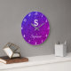Reloj Redondo Grande Monogramas Brillantes Rosa Púrpura Favor de Regalo