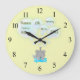 Este diseño se muestra en un reloj de fondo amarillo limón pálido, sin embargo está disponible en una serie de colores pastel para bebés en varios productos para la guardería infantil o el dormitorio para niños en mi tienda. Por favor, siéntase libre de cambiar el color o transferir el diseño a un producto de su elección.
