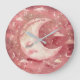 This charming large wall clock features a rustic moon design with soft shades of red. Its unique, textured surface adds warmth and character to any room. Perfect for a child's bedroom, nursery, or any space needing a touch of whimsical, classic, and colorful decor.