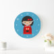 Reloj Redondo Grande Muñecas japonesas rojas kokeshi