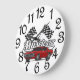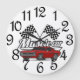 Un Gran Reloj De Muro Numerado Hecho En Una Bandera De Carrera De Cheques Negros Y Blancos Con Centro De Coche Del Músculo Rojo