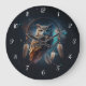 Reloj Redondo Grande Mystical Space Owl with Dreamcatcher Art