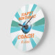 Desee un cumpleaños feliz a su entrenador de fútbol. Centrado en una pelota de fútbol, este divertido regalo, recuerdo o regalo enviará deseos para un año ganador y uno que comience a pie derecho.