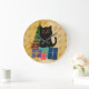 Reloj Redondo Grande Naranja festivo Feliz Navidad Café gato negro