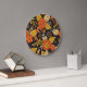 Reloj Redondo Grande Naranja retro, floral amarilla y marina