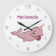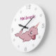 Reloj Redondo Grande Narwhal Pink | Girly Kawaii Chibi Cartoon Custom