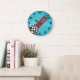 Reloj Redondo Grande Nave Espacial Retro Rojo Cohete Galáctico