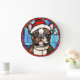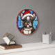 Reloj Redondo Grande Navidades de vidrio templado de Bulldog francés