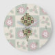 Cuatro plazas de color verde y marrón están adornadas con adornos rojos adornados con copos de nieve blancos y verde y con bayas rojas. El punzonado blanco aporta un toque decorativo, dando a la tónica repetida la apariencia de una colcha, creando un ambiente muy acogedor para las vacaciones de los Navidades. La forma de un ornamento de lágrima crea una máscara para que el diseño añada un toque estacional final.