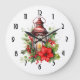 Reloj Redondo Grande Navidades rojos Lantern Poinsettia y Pine
