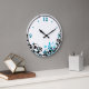 Neon blue, black, and white floral wall clock. You can add text to customize this design. The color number to use for the neon blue is 00b6df. You can also change the background color and even add photos if you want.