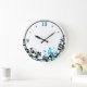 Reloj Redondo Grande Neon Blue Black White Floral Wall Clock