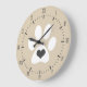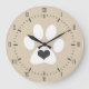 Reloj de pared de moda que ofrece una impresión linda de la pata del mascota en blanco con números romanos negros y corazón gris. El color de fondo es de color topo pero puede ser modificado para requisitos particulares.