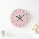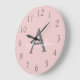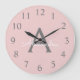 Reloj Redondo Grande Nombre de monograma moderno de escritura gris rosa