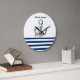 Reloj Redondo Grande Nombre del barco,Flores de anclaje Bandas azules d