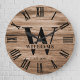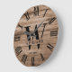 Nombre de la familia personalizada, monograma y reloj de pared moderna y rústica establecido por el año en un diseño de estilo de casa de campo moderno con cara de reloj numérico romano y diseño de fondo de madera clara y blanco. Un regalo perfecto para recién casados, bodas o regalos para el hogar o abuelos, o para el cambio de casa en su camarote, cabaña o casa de campo.