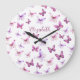 Reloj Redondo Grande Nombre personalizado de mariposas rosadas de bonit