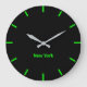 Descubra el mejor reloj de pared moderno para sala de estar y oficina con la ciudad de Nueva York escrita en él. fondo en blanco y negro en el sentido de las agujas del reloj