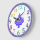 números coloridos y reloj de pared damasco azul. Este colorido reloj único es uno de esos.