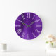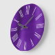 Reloj Redondo Grande Números romanos blancos de Relieve metalizado púrp