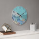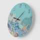 Este reloj hermoso tiene estrellas de mar, cáscaras del mar, corales, dólares de arena y mar-fans en colores del azul y de la turquesa. Una adición perfecta a cualquier sitio para los que aman el océano.