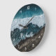 Añada un toque de vibración de playa de verano a cualquier habitación con este personalizable de gran reloj con olas del océano azules y verdes. Perfecto para los amantes de la playa y de la decoración casera.