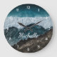 Reloj Redondo Grande Olas azules del océano Verde estrellándose contra