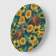Reloj Redondo Grande Ondas y flores en azul oscuro