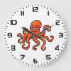 Reloj Redondo Grande Orange Octopus Cartoon Ocean Sea Creature