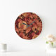 Reloj Redondo Grande Oro Rojo, Patrón Geométrico Tropical.