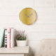 Reloj de aspecto metálico dorado con manos grises plateadas hace una declaración simple y elegante.